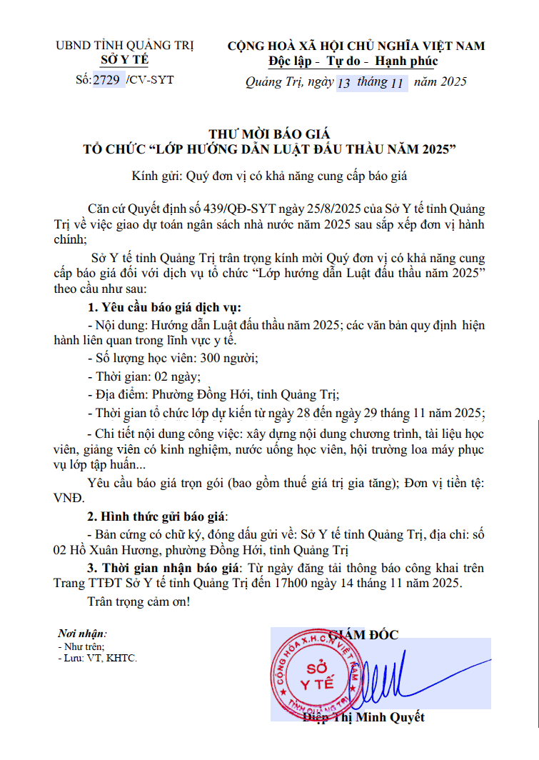 - Mời chào giá thiết bị, dụng cụ y tế phục vụ khám chữa bệnh (11/04/2025)