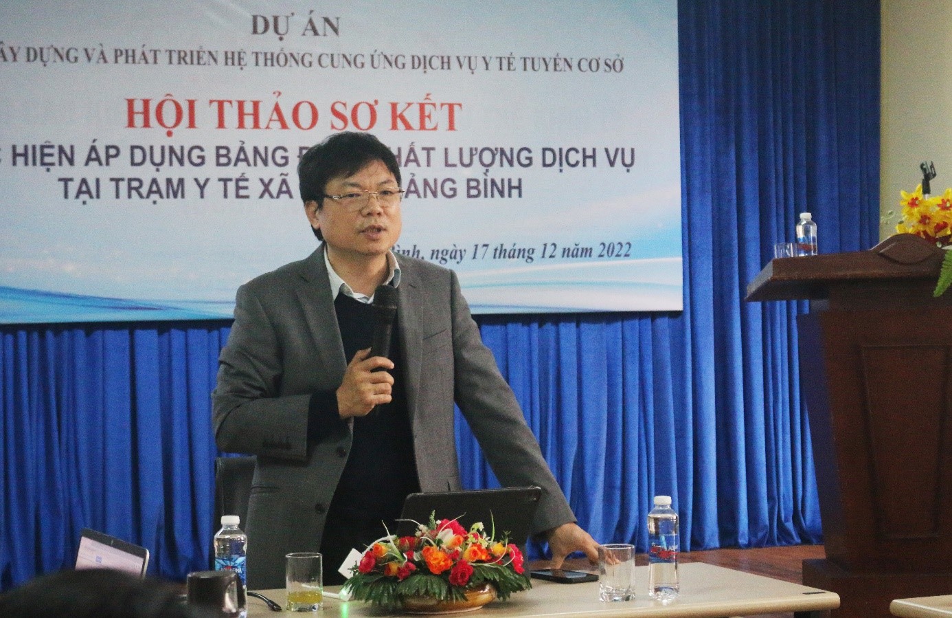 Ngày 17/12/2022, Sở Y tế - Ban Quản lý dự án Đầu tư xây dựng và phát triển hệ thống cung ứng dịch vụ y tế tuyến cơ sở tỉnh đã tổ chức Hội thảo sơ kết thực hiện Áp dụng Bảng điểm chất lượng (BĐCL) dịch vụ tại Trạm Y tế xã/phường/thị trấn. Đồng chí Dương Thanh Bình, BS Chuyên khoa cấp II, Giám đốc Sở Y tế - Giám đốc ban quản lý dự án tham dự và chủ trì hội thảo.