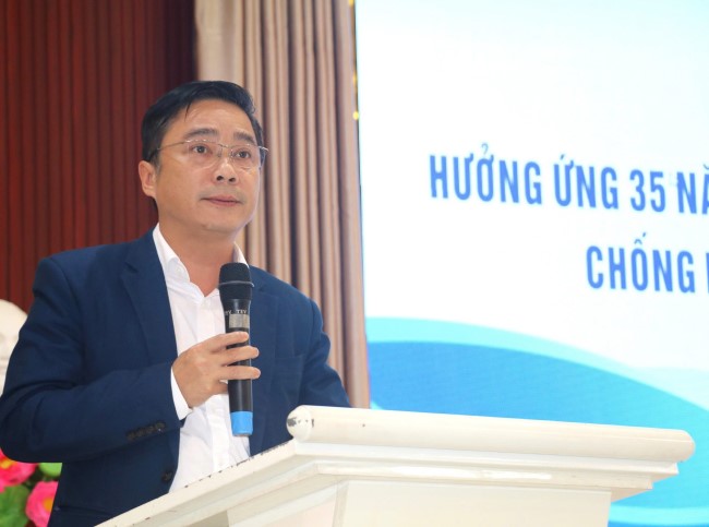 Bác sỹ CKII Nguyễn Xuân Dũng, Phó Giám đốc Sở Y tế tỉnh Quảng Trị phát biểu khai mạc mít tinh.