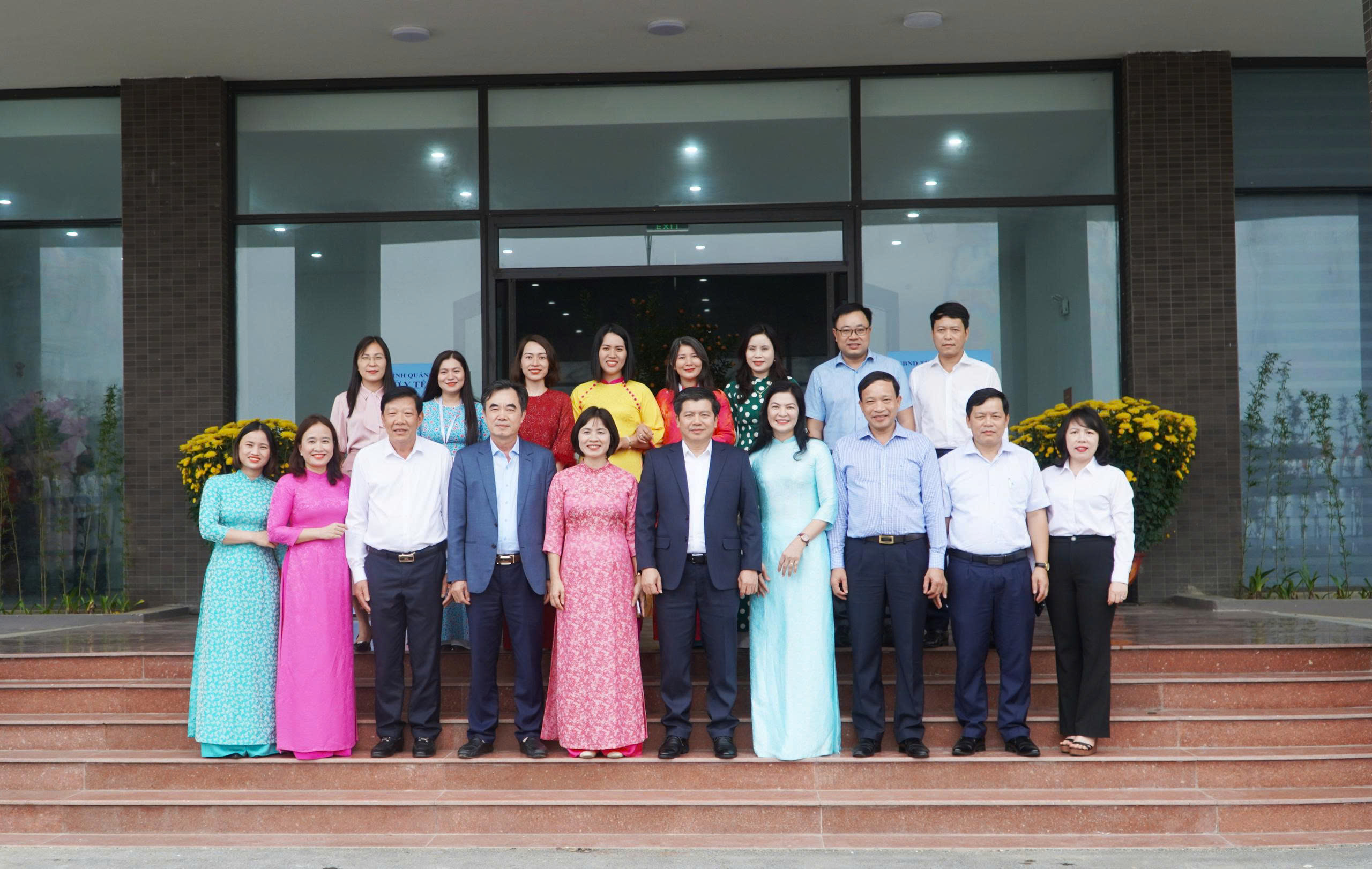 Đồng chí Trần Vũ Khiêm, Phó Bí thư Thường trực Tỉnh ủy chụp ảnh lưu niệm cùng lãnh đạo, cán bộ, nhân viên Sở Y tế