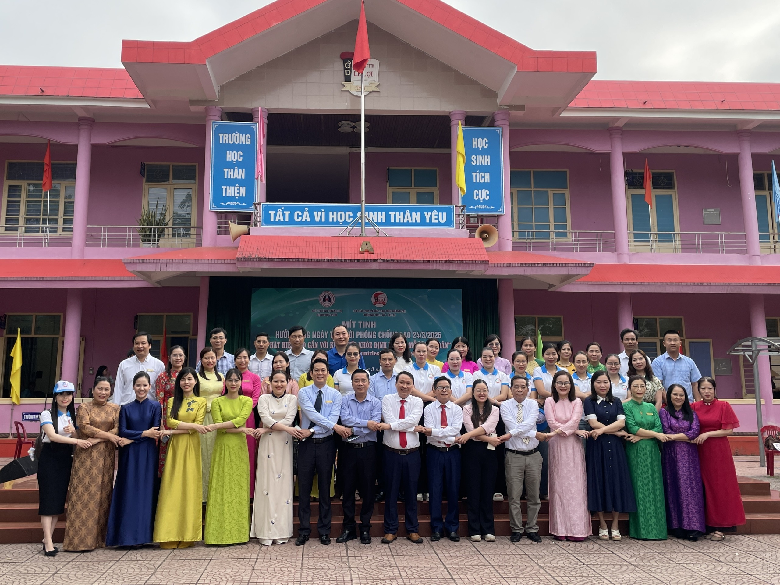 Sáng 23/3, tại Trường THPT số 1 Lê Lợi, phường Nam Đông Hà, Bệnh viện Phổi tỉnh Quảng Trị tổ chức lễ mít tinh hưởng ứng Ngày Thế giới phòng, chống lao (24/3), với chủ đề: “Phát hiện lao gắn với khám sức khỏe định kỳ cho mỗi người dân”. Tham dự có ông Nguyễn Xuân Dũng, Phó Giám đốc Sở Y tế tỉnh Quảng Trị, cùng đại diện các ban, ngành, đoàn thể và đông đảo giáo viên, học sinh trên địa bàn.