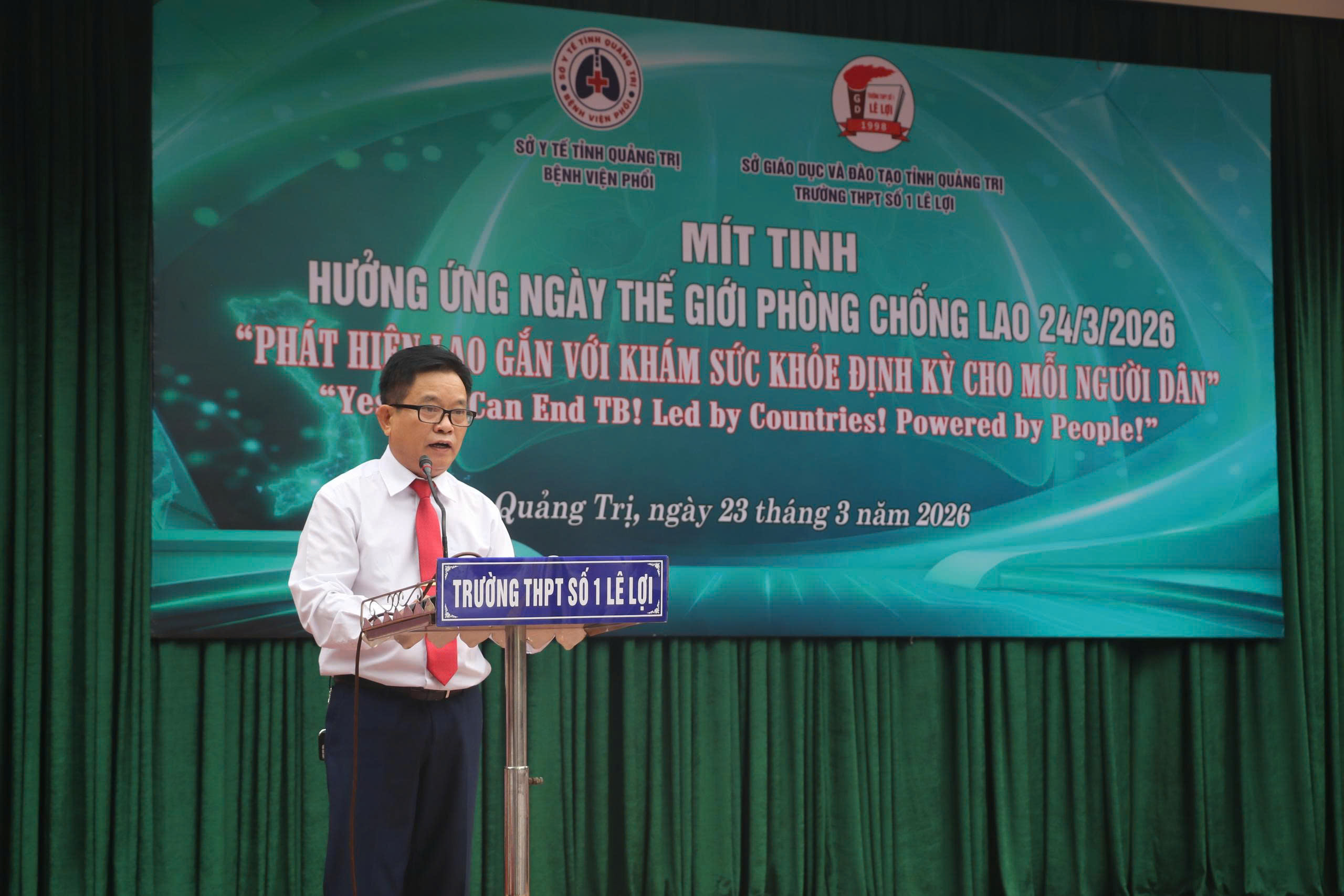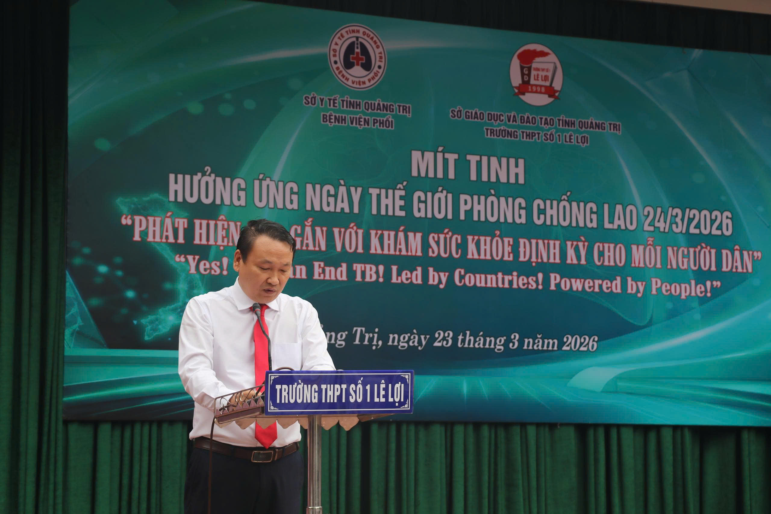 Phát biểu tại lễ mít tinh, ông Nguyễn Xuân Dũng, Phó Giám đốc Sở Y tế tỉnh Quảng Trị ghi nhận và biểu dương những nỗ lực của đội ngũ cán bộ, y bác sĩ Bệnh viện Phổi và các đơn vị liên quan trong công tác phòng, chống lao thời gian qua. Bên cạnh đó, lãnh đạo Sở Y tế cũng nhấn mạnh: “Để thực hiện hiệu quả mục tiêu chấm dứt bệnh lao, thời gian tới các cơ sở y tế cần tiếp tục nâng cao năng lực phát hiện sớm, quản lý và điều trị hiệu quả bệnh nhân lao. Đẩy mạnh công tác truyền thông, đa dạng hóa hình thức tuyên truyền, đặc biệt trong trường học và cộng đồng. Tổ chức tốt hoạt động khám sức khỏe định kỳ, sàng lọc phát hiện lao. Tăng cường phối hợp giữa ngành Y tế với ngành Giáo dục và các tổ chức đoàn thể, phát huy vai trò của thầy cô giáo, học sinh trong công tác phòng, chống lao”.