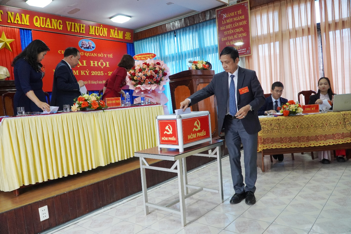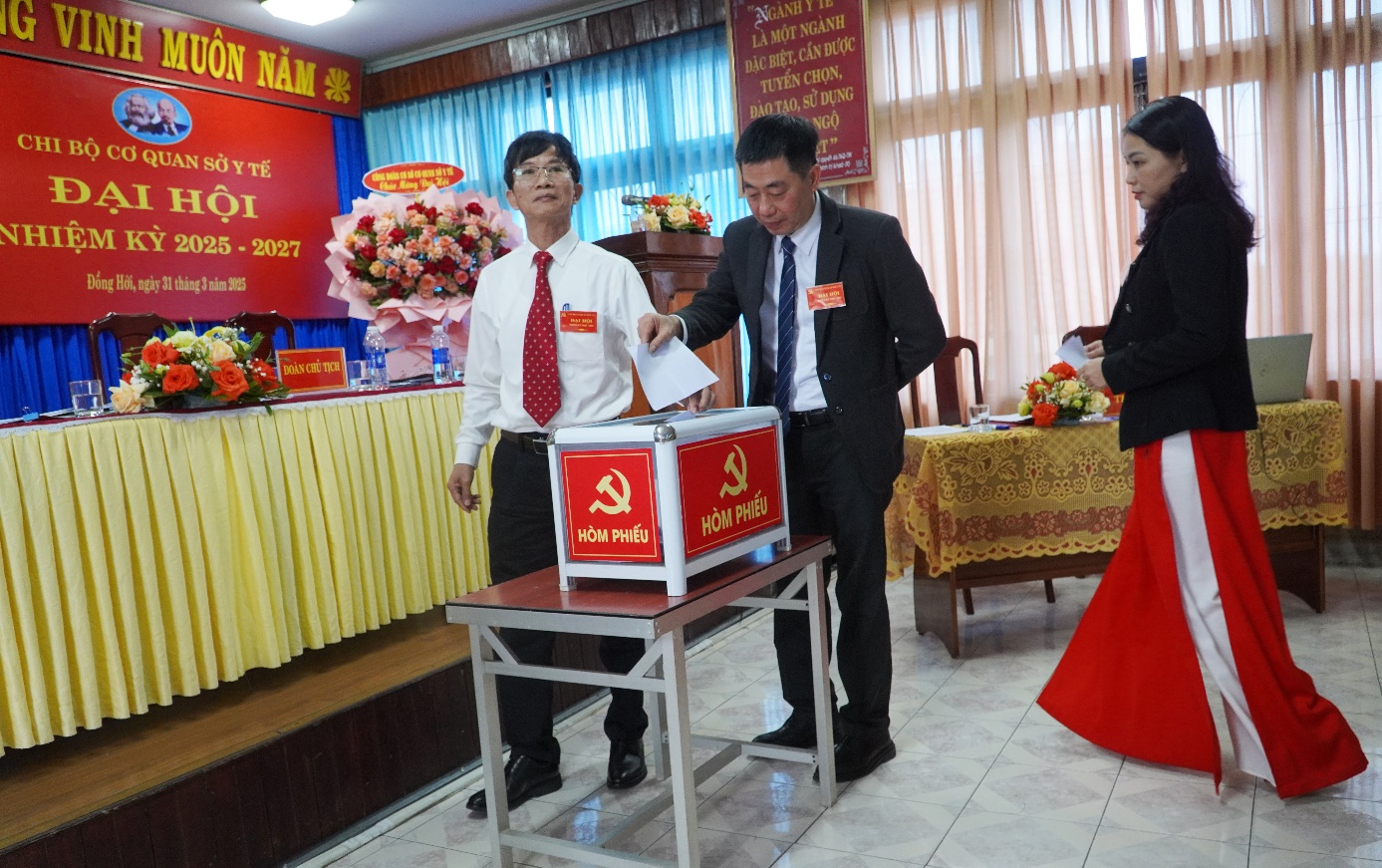 Trên tinh thần tập trung trí tuệ, phát huy tính đảng và ý thức trách nhiệm của người đảng viên. Với sự đồng lòng nhất trí cao, Đại hội đã tiến hành bầu cấp ủy chi bộ Văn phòng Sở Y tế nhiệm kỳ 2025 - 2027 gồm 07 đồng chí, đồng chí Đinh Viễn Anh - Phó Giám đốc Sở Y tế được bầu giữ chức vụ Bí thư Chi bộ, đồng chí Trần Tấn An giữ chức vụ Phó Bí thư chi bộ. Đại hội cũng bầu đoàn đại biểu dự đại hội cấp trên gồm 24 đồng chí.