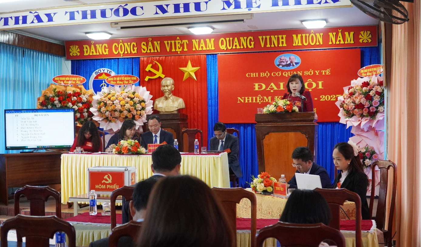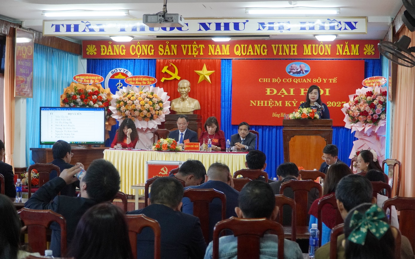 Phát biểu chỉ đạo Đại hội, TTND, BSCKII. Dương Thanh Bình, Bí thư Đảng bộ, Giám đốc Sở Y tế biểu dương và ghi nhận những kết quả chi bộ Văn phòng Sở Y tế đã đạt được trong nhiệm kỳ qua, đồng chí đề nghị: Chi bộ tập trung quán triệt, thực hiện nghiêm túc, hiệu quả Nghị quyết số 57-NQ/TW về đột phá phát triển khoa học, công nghệ, đổi mới sáng tạo và chuyển đổi số quốc gia, tập trung thực hiện chuyển đổi số ngành tế, tiếp tục thực hiện hồ sơ, bệnh án điện tử, cải cách hành chính, sử dụng công nghệ thông tin để nâng cao chất lượng quản lý, nâng cao hiệu quả công việc.