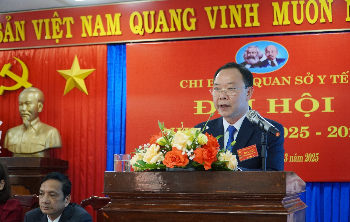 Đồng chí Dương Thanh Bình, Bí thư Đảng bộ, Giám đốc Sở Y tế phát biểu chỉ đạo đại hội