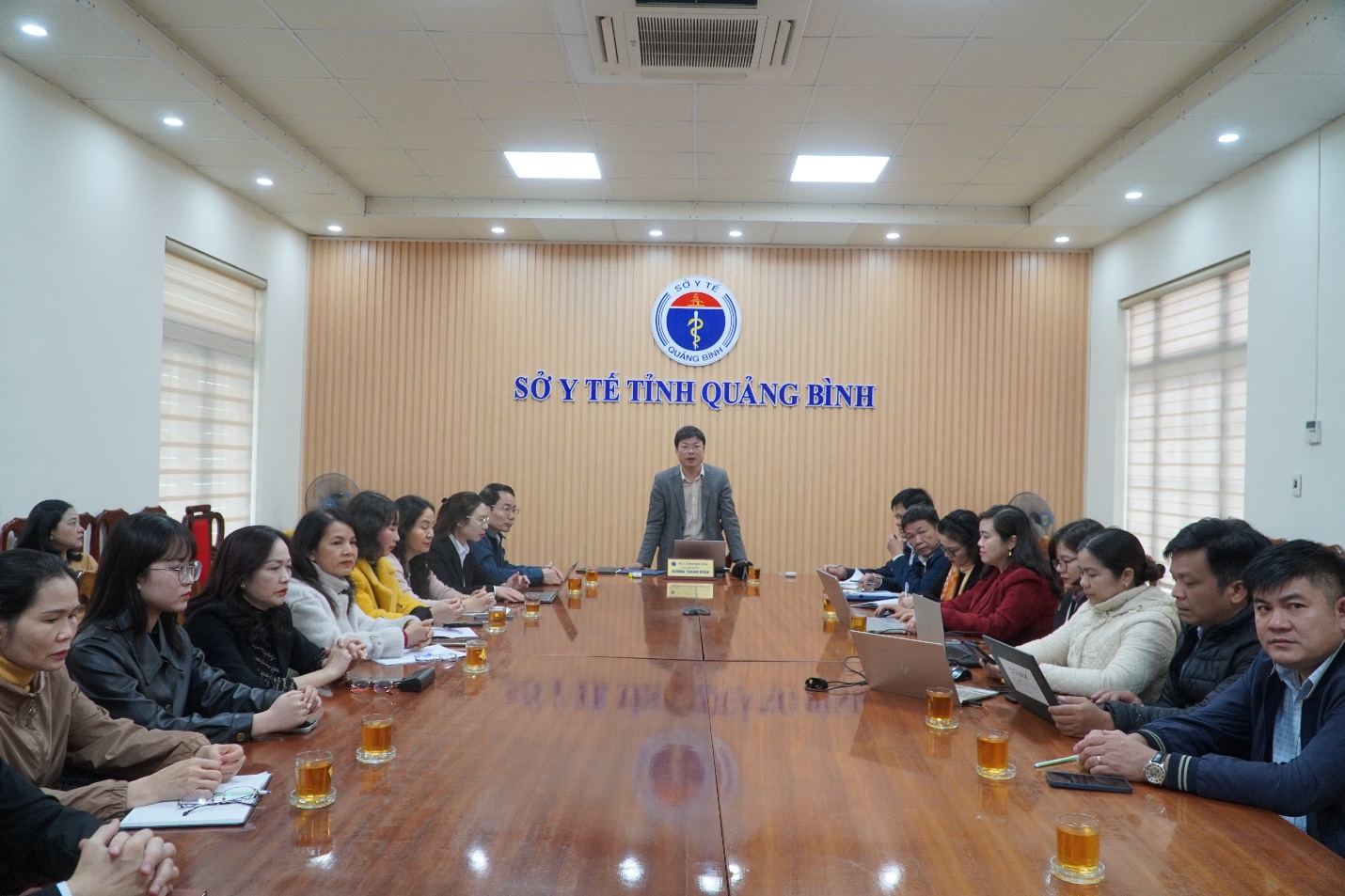 Chủ trì tại điểm cầu Sở Y tế có bác sĩ Dương Thanh Bình, Giám đốc Sở Y tế; Các phòng ban liên quan; Lãnh đạo Trung tâm Kiểm soát bệnh tật và các đơn vị y tế trên địa bàn thành phố Đồng Hới. Điểm cầu tuyến huyện có Bệnh viện đa khoa, TTYT, Phòng Y tế và cán bộ phụ trách công tác xã hội, Kiểm soát nhiễm khuẩn, Điều dưỡng của các đơn vị y tế...