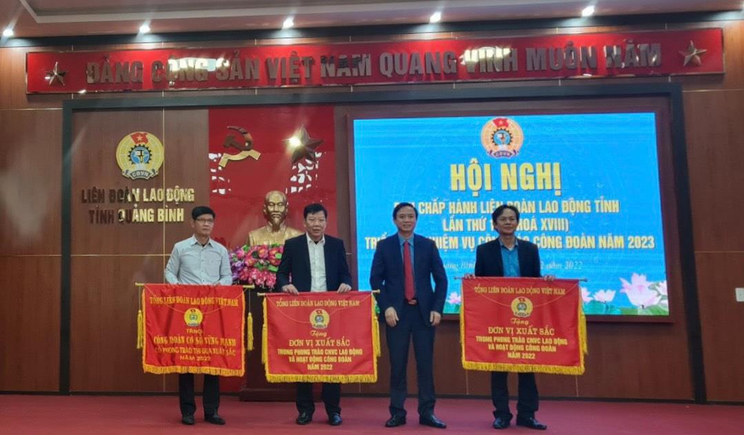 Công đoàn Ngành Y tế Quảng Bình vinh dự được Tổng Liên đoàn lao động Việt Nam tặng cờ Đơn vị xuất sắc vì đã có thành tích trong năm 2022