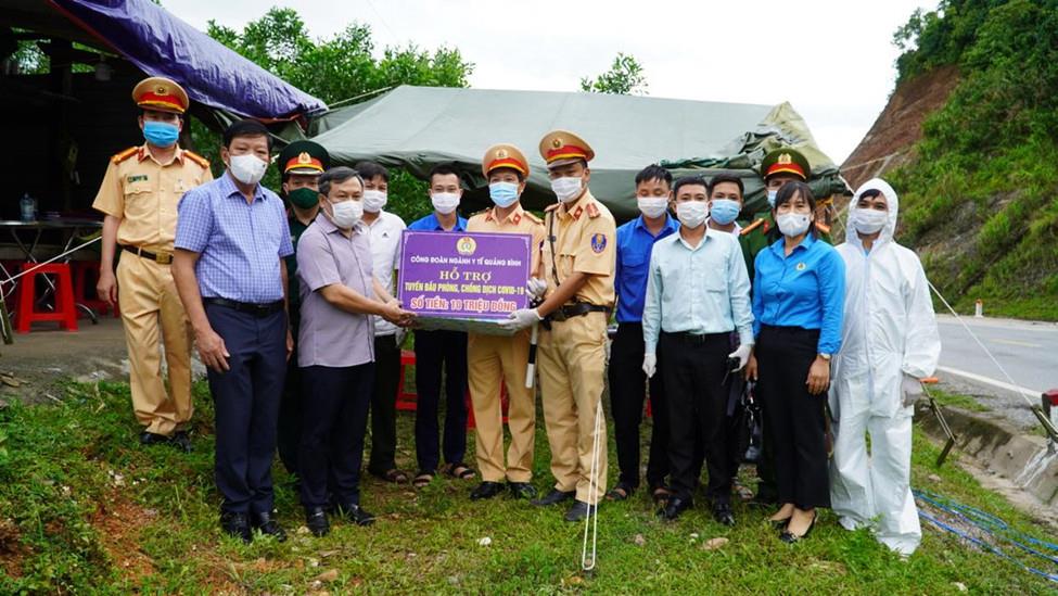 Lãnh đạo tỉnh và Công đoàn ngành Y tế Quảng Bình trao quà hỗ trợ chốt kiểm soát phòng chống dịch Covid-19 trên tuyến đường 12A huyện Tuyên Hóa
