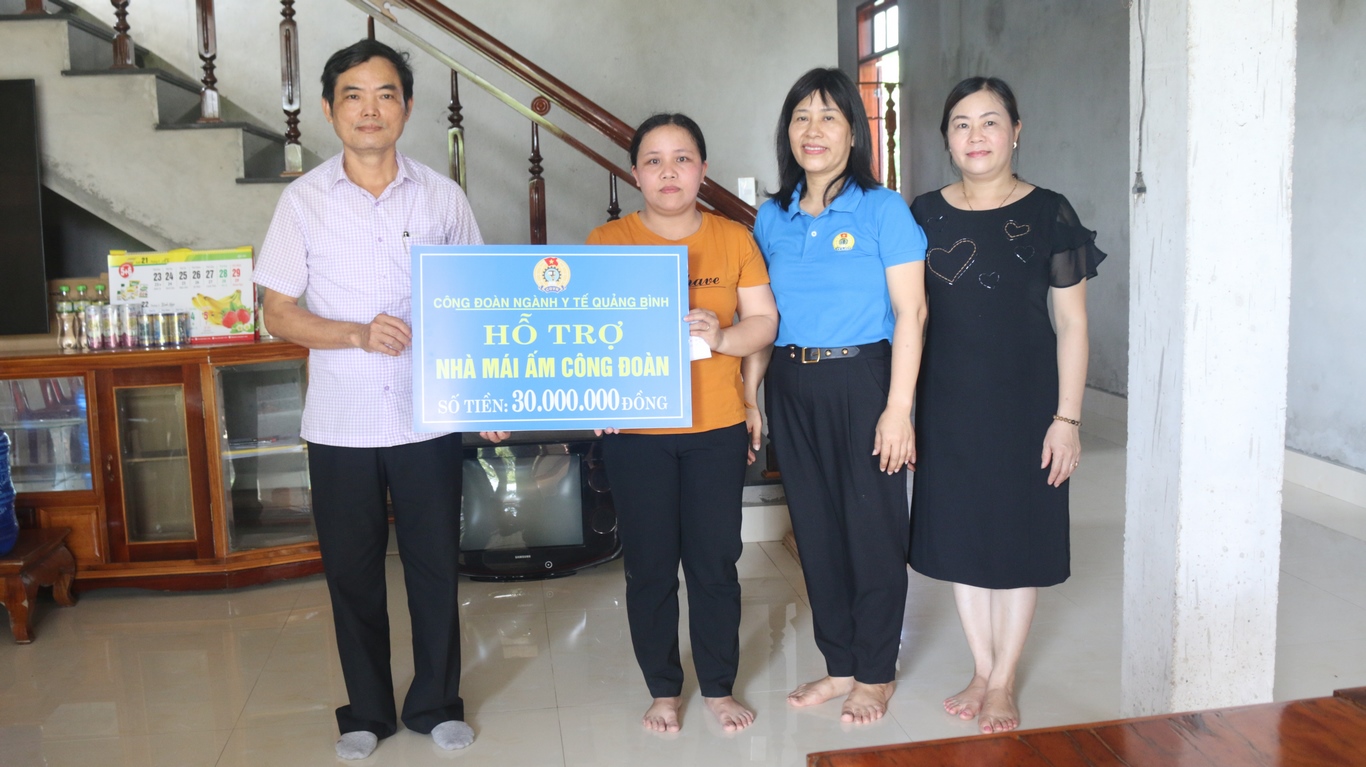Ban Thường vụ Công đoàn ngành Y tế trao số tiền hỗ trợ xây dựng nhà “mái ấm công đoàn” cho chị Hoàng Thị Hậu xã Liên Thủy, huyện Lệ Thủy