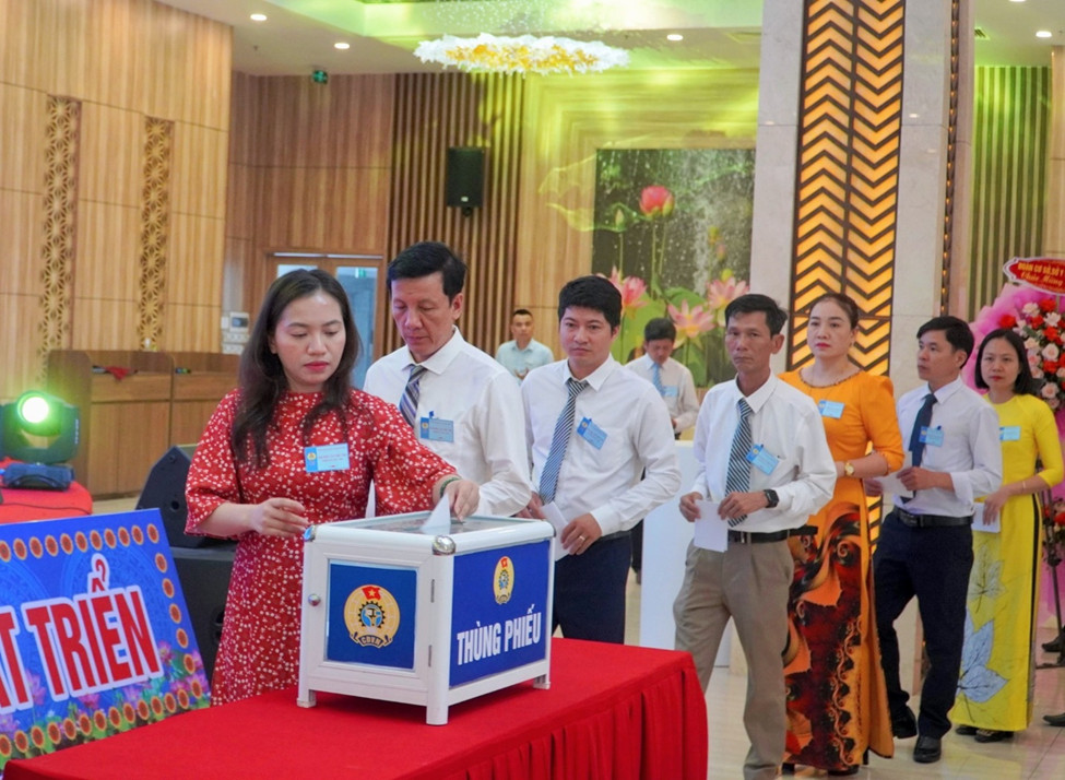 Các đại biểu bỏ phiếu bầu Ban Chấp hành Công đoàn ngành Y tế khóa VIII, nhiệm kỳ 2023-2028.