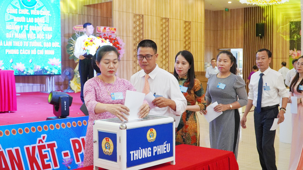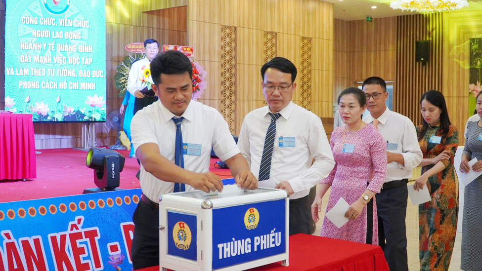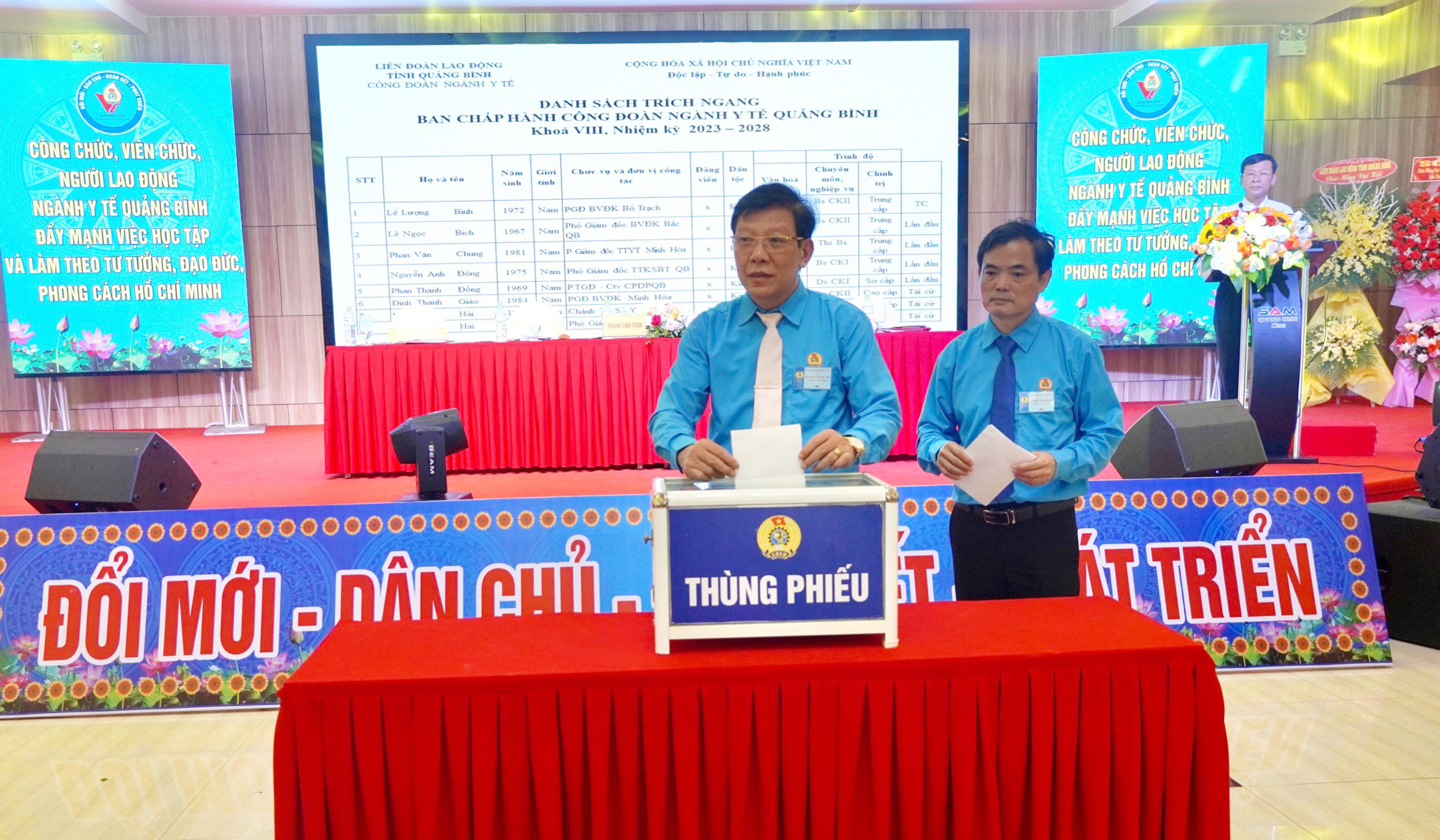 Với sự đồng thuận và tín nhiệm cao, các đại biểu tham dự đại hội đã bầu ra 15 đồng chí đủ phẩm chất, năng lực vào Ban Chấp hành Công đoàn Y tế khoá VIII, nhiệm kỳ 2023-2028. Đồng chí Phan Thanh Hải tái cử chức danh Chủ tịch; đồng chí Hoàng Thị Thanh Tâm tái cử chức danh Phó Chủ tịch Công đoàn, khoá VIII. Đại hội cũng đã bầu đoàn đại biểu dự Đại hội Công đoàn Quảng Bình lần thứ XIX, nhiệm kỳ 2023 – 2028.