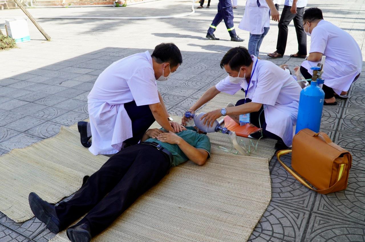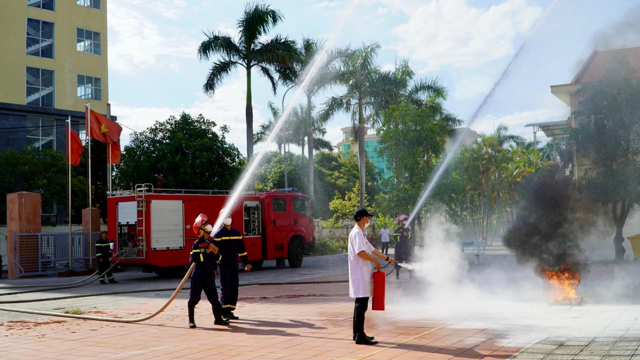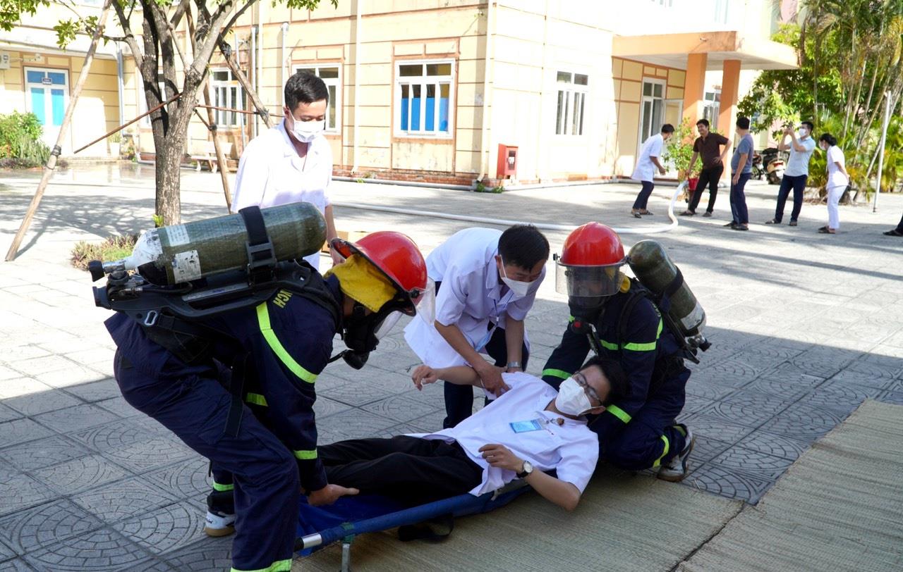 Tại buổi diễn tập, Phòng Cảnh sát PCCC&CNCH tỉnh đã điều động các chiến sĩ PCCC và xe nghiệp vụ đến hiện trường. Cùng với sự phối hợp của các cán bộ đến từ lực lượng PCCC cơ sở, lực lượng Cảnh sát PCCC&CNCH dập tắt đám cháy sau khoảng gần 20 phút, đảm bảo tính mạng và tài sản cho người mọi người trong bệnh viện.