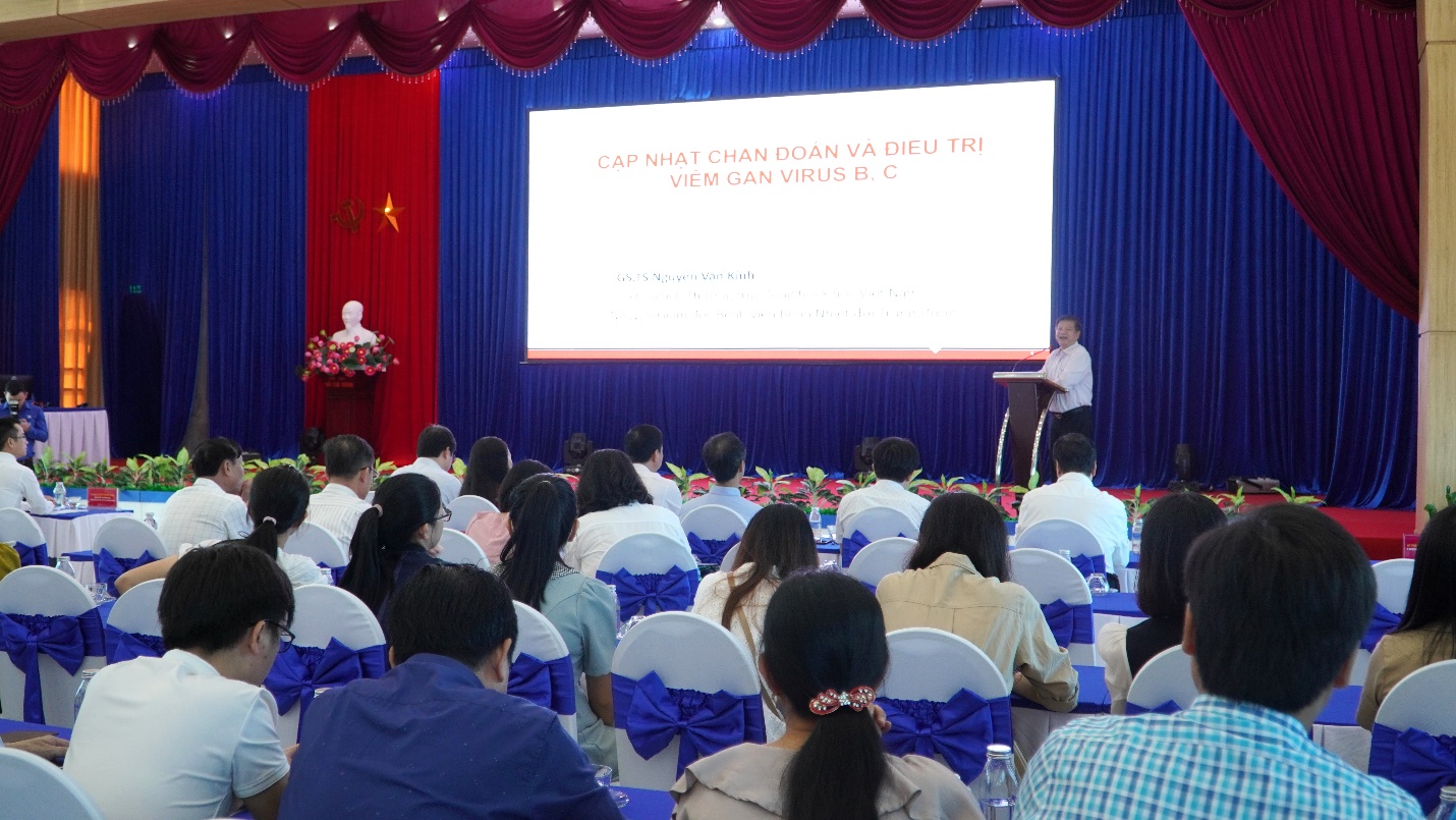 GS.TS Nguyễn Văn Kính, Phó Chủ tịch Thường trực Tổng hội Y học Việt Nam đang truyền đạt kiến thức về “cập nhật chẩn đoán và điều trị viêm gan Virus B, C”