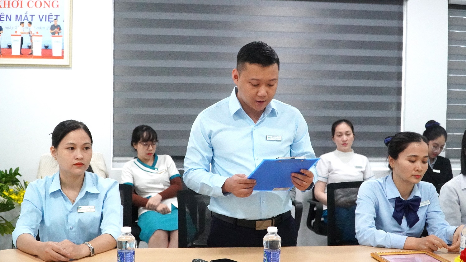 Đồng chí Nguyễn Ngọc Khánh, Chủ tịch Công đoàn cơ sở Bệnh viện Mắt Việt An tiếp thu ý kiến chỉ đạo của Công đoàn Ngành Y tế