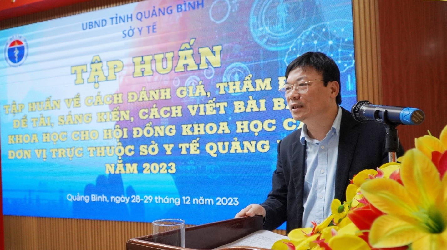 Trong 2 ngày 28-29/12/2023, Sở Y tế Quảng Bình tổ chức lớp tập huấn về cách đánh giá, thẩm định đề tài, sáng kiến, cách viết bài báo khoa học cho hội đồng khoa học các đơn vị trực thuộc Sở Y tế. Tham dự chỉ đạo lớp tập huấn có bác sĩ Dương Thanh Bình, Giám đốc Sở Y tế; đại diện các phòng ban thuộc sở; thành viên hội đồng khoa học các đơn vị trực thuộc Sở Y tế.