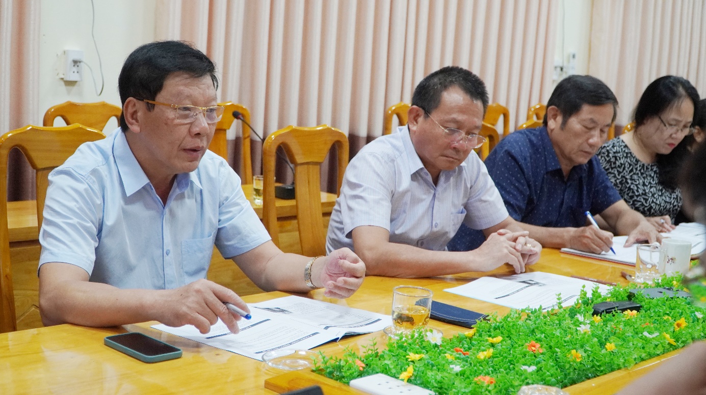 Bác sĩ Phan Thanh Hải (trái), phó giám đốc Sở Y tế phát biểu tại buổi làm việc