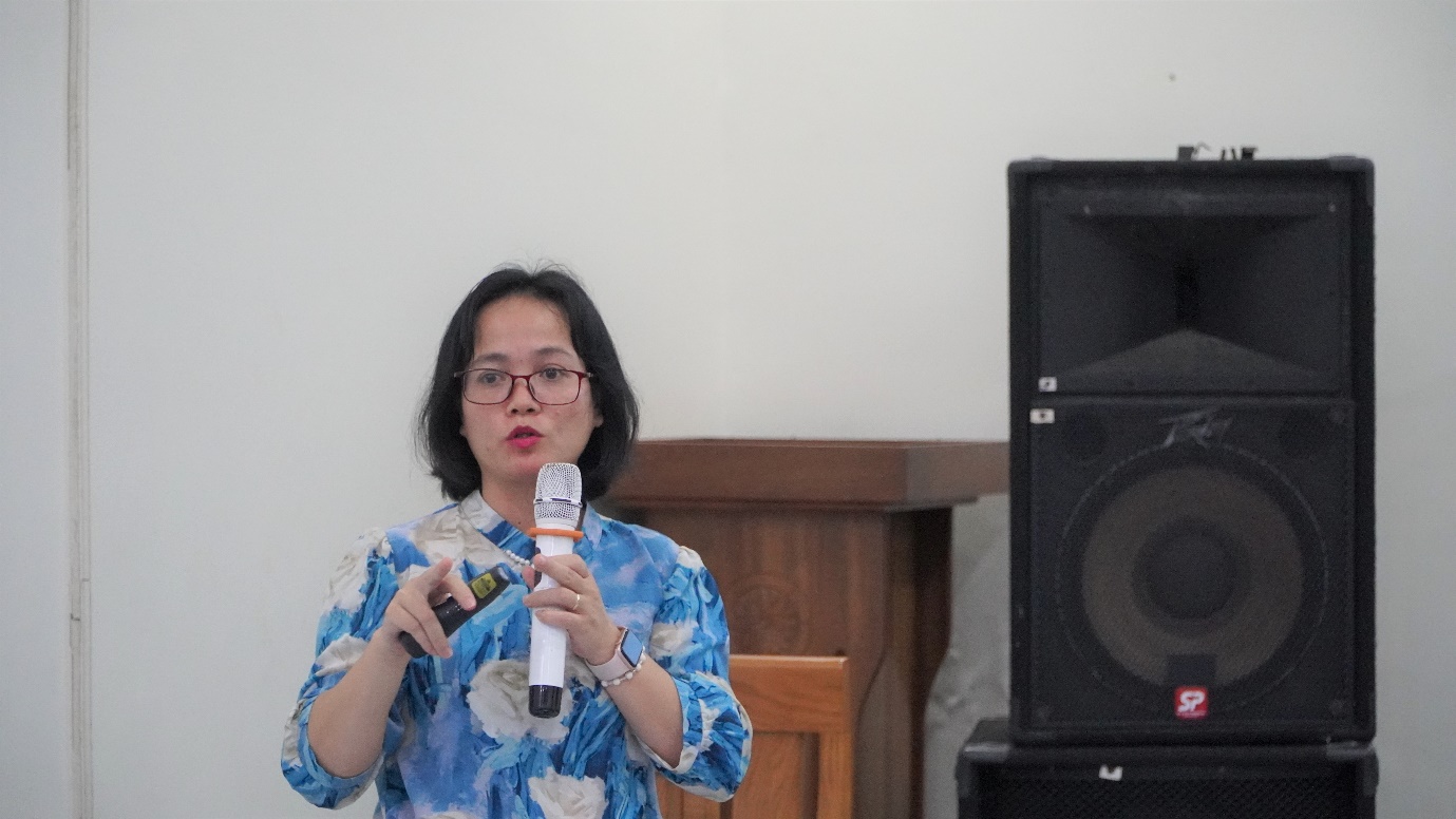 TS Vũ Thị Trang, Trưởng khoa dinh dưỡng và phụ gia thực phẩm, Viện Kiểm nghiệm ATVSTP Quốc gia đang trình bày các nội dung lý thuyết