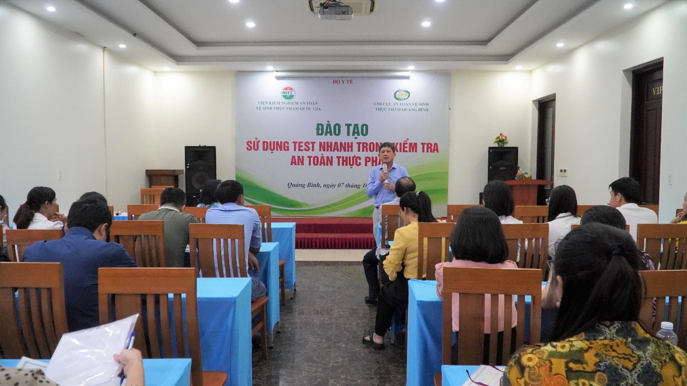 Phát biểu khai mạc lớp tập huấn, Ths. Lê Minh Tiến, Chi cục trưởng Chi cục An toàn vệ sinh thực phẩm đã nhấn mạnh tầm quan trọng của việc sử dụng test nhanh trong công tác đảm bảo an toàn vệ sinh thực phẩm (ATVSTP) và phòng ngừa ngộ độc thực phẩm. Lớp đào tạo mong muốn sẽ trang bị các kiến thức cần thiết cho học viên về kĩ năng phát hiện và đánh giá nhanh được mức độ an toàn của thực phẩm sơ chế, đóng gói, kinh doanh tại các chợ truyền thống, các siêu thị trên địa bàn tỉnh, đặc biệt là dịp cuối năm khi nhu cầu mua bán tăng cao, qua đó sẽ đảm bảo được thực phẩm an toàn đến tay người tiêu dùng.