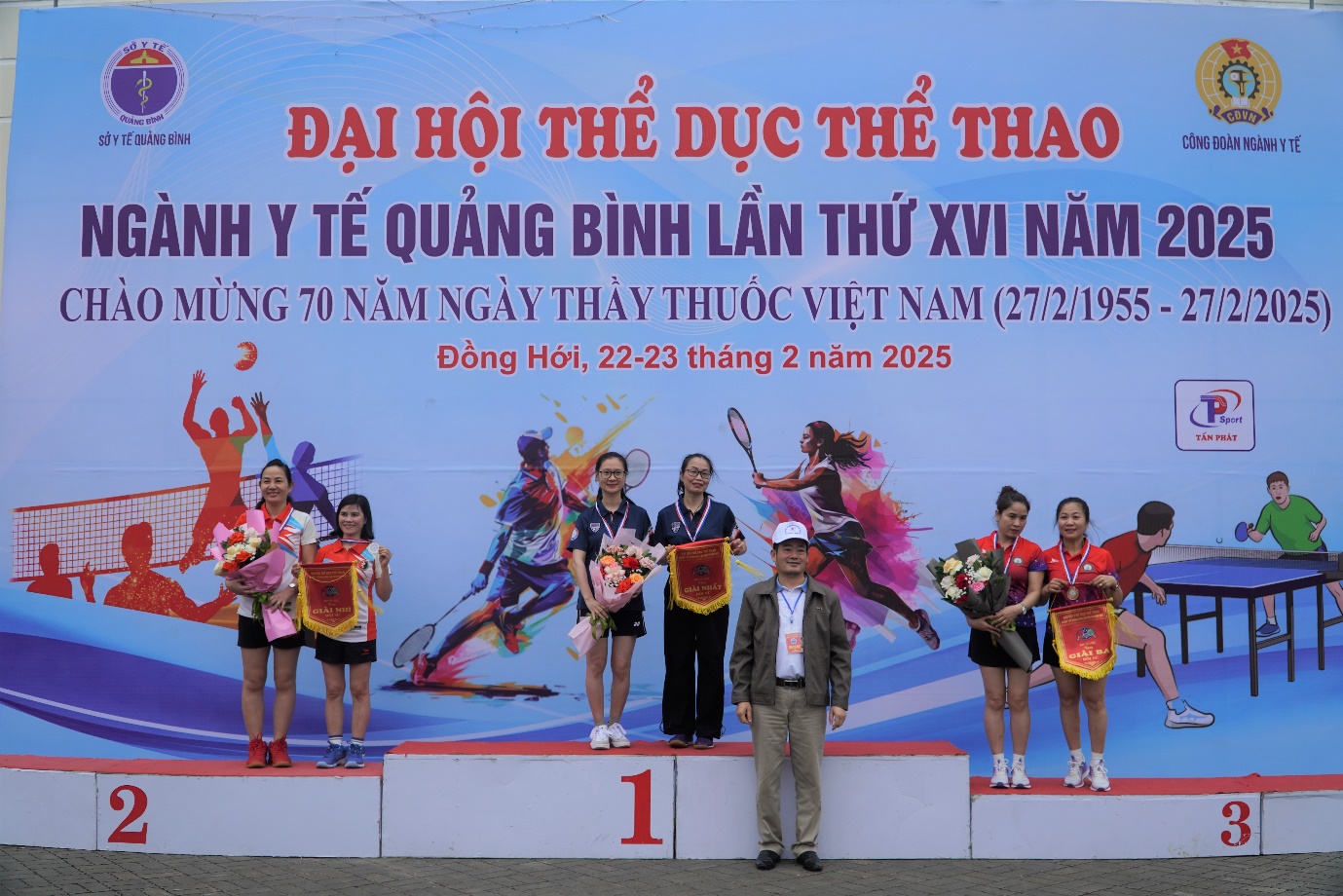 Giải nhất môn cầu lông nội dung đôi nữ được trao cho 2 VĐV Trần Thị Thủy và Trương Thị Thanh Huyền, Trung tâm Kiểm soát bệnh tật tỉnh.