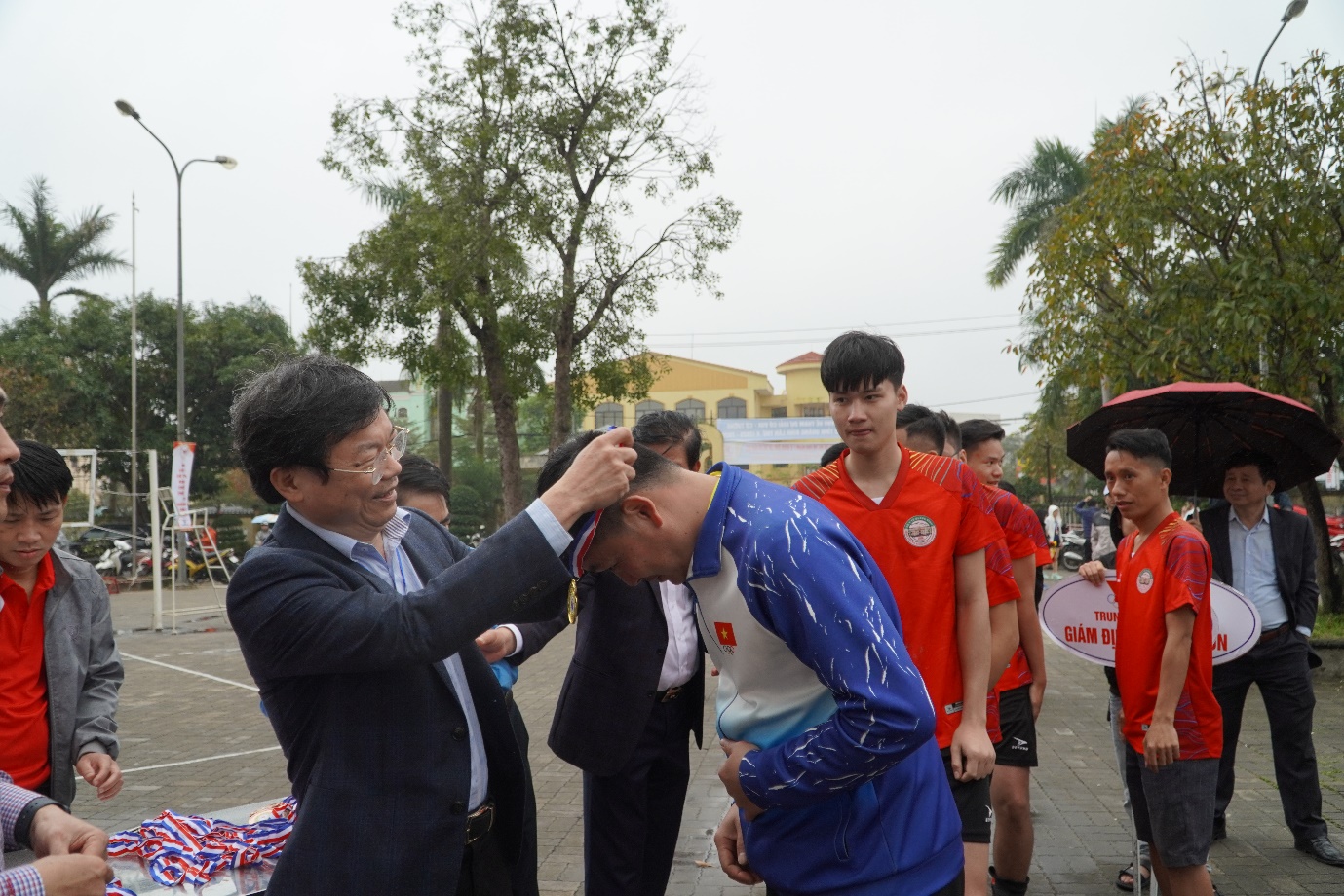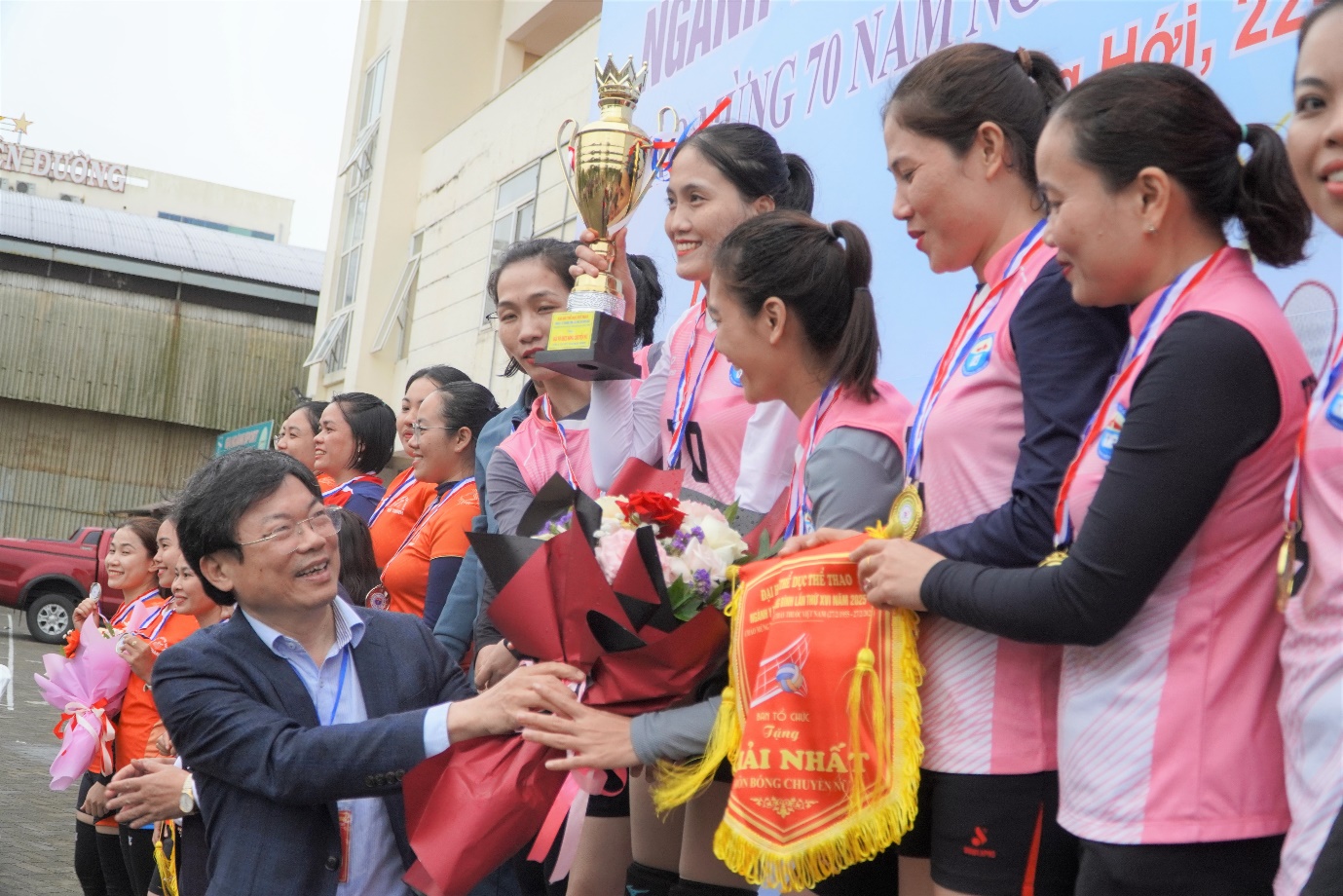 Đồng chí Dương Thanh Bình, Giám đốc Sở Y tế trao giải nhất bóng chuyền nữ cho đội Trường Cao Đẳng Y tế Quảng Bình