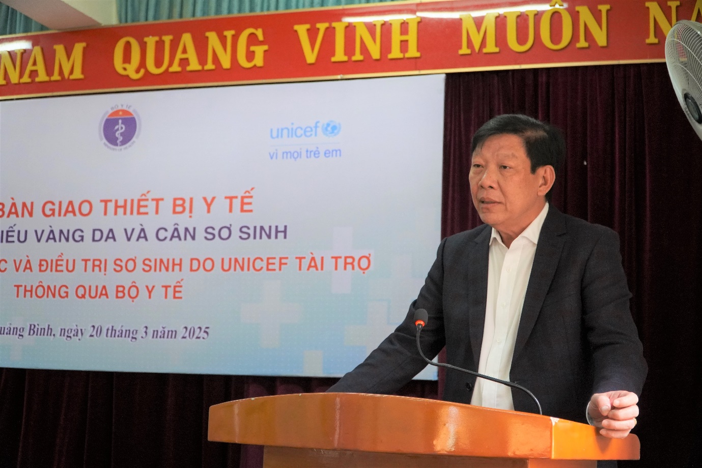 Tại buổi tiếp nhận, bác sĩ Phan Thanh Hải, Phó Giám đốc Sở Y tế đã phát biểu cảm ơn tổ chức UNICEF và Bộ Y tế đã luôn quan tâm hỗ trợ cho tỉnh Quảng Bình trong những năm qua. Những thiết bị sơ sinh nói trên rất cần thiết, góp phần phục vụ công tác chăm sóc và điều trị cho trẻ sơ sinh trên địa bàn tỉnh. Phó Giám đốc Sở Y tế đề nghị các đơn vị được hỗ trợ phát huy hiệu quả sử dụng của trang thiết bị, đồng thời bảo quản tốt các trang thiết bị để sử dụng lâu dài, góp phần nâng cao chất lượng chăm sóc và điều trị cho trẻ sơ sinh trên địa bàn.