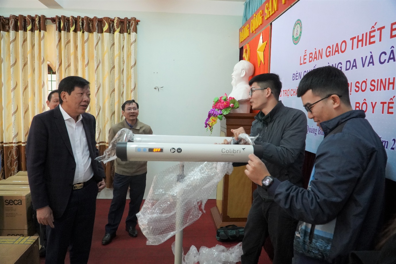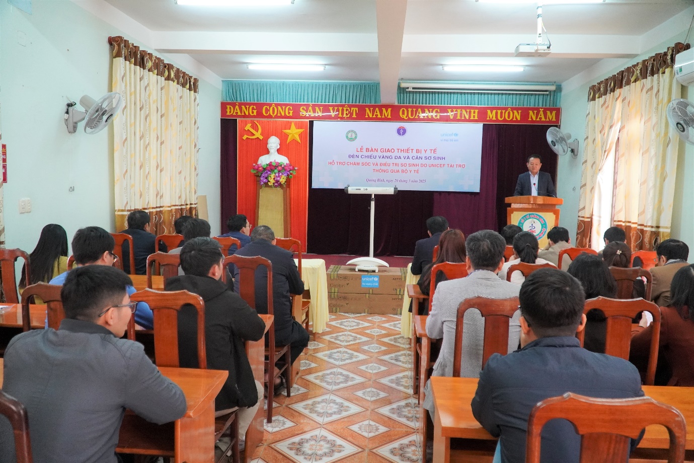 Được sự tài trợ của Quỹ Nhi đồng Liên hợp quốc (UNICEF), Sáng ngày 20/3/2025, Trung tâm Kiểm soát bệnh tật đã tổ chức tiếp nhận, bàn giao đèn chiếu vàng da và cân sơ sinh cho Trung tâm Y tế huyện Quảng Trạch và 7 bệnh viện đa khoa huyện, thành phố.