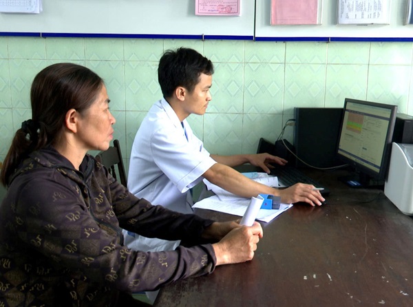 Bác sĩ đang kiểm tra hồ sơ bệnh án điện tử cho người dân - Ảnh: T.T