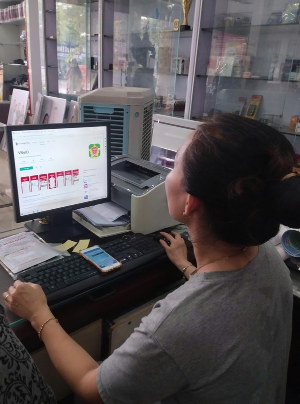 Người dân cập nhật thông cá nhân trên ứng dụng VneID. Ảnh: Bội Nhiên