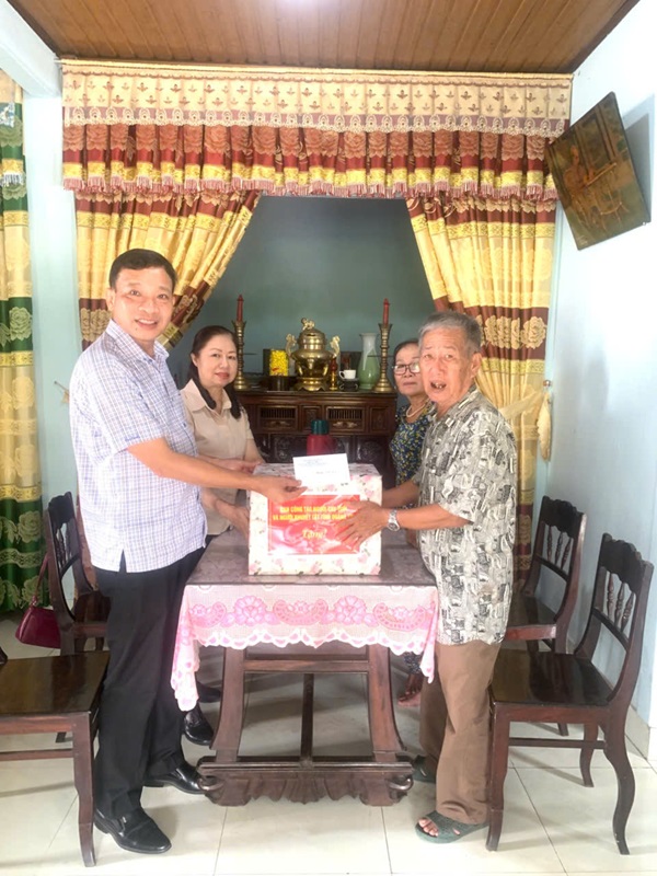 Đ/c Hồ Tân Cảnh Phó giám đốc Sở Y tế thăm tặng quà cho các cụ